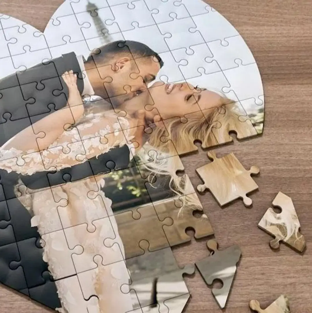 - 1 x Heart Shaped photo puzzle printed with your images or text.